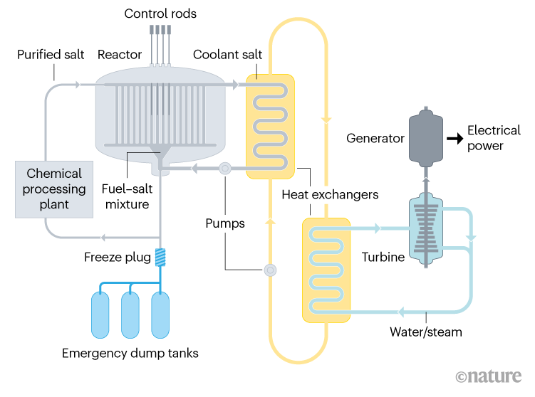Схема ядерного реактора на расплавах солей (molten salt reactor)