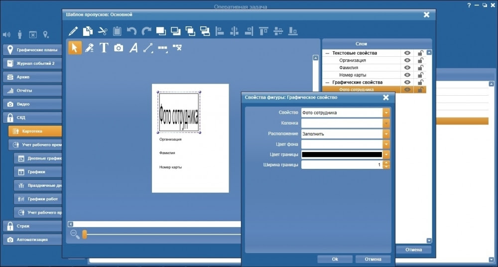Классический функционал общий для всех — конфигурация контроллеров, наблюдение в режиме реального времени за событиями происходящими в системе, настройка прав пользователей, создание карточек персонала, редактор шаблонов пропусков, учет рабочего времени, графические планы, фотоверификация, sms и е-mail оповещения.